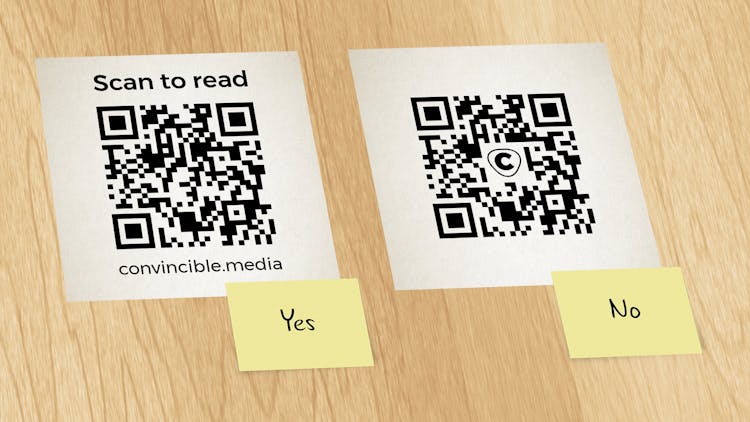 It’s also worth writing down the domain name that the code points to, either separately or as part of the instruction. For instance, “Scan to visit convincible.media”. Someone is more likely to use the code if they know which website it will take them to.