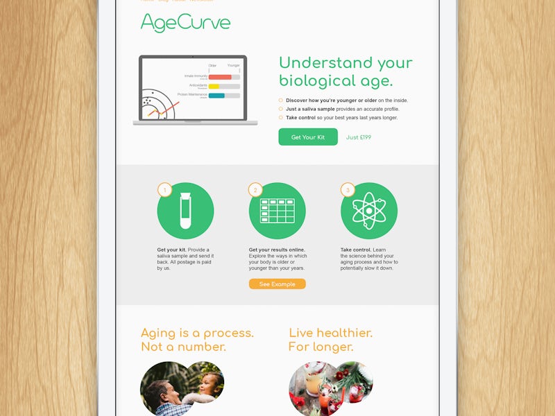 AgeCurve is an innovative biotech startup, whose simple home testing kit helps customers understand their ageing. They analyse the known markers of ageing and present a clear report that helps you understand how old you are – on the inside.