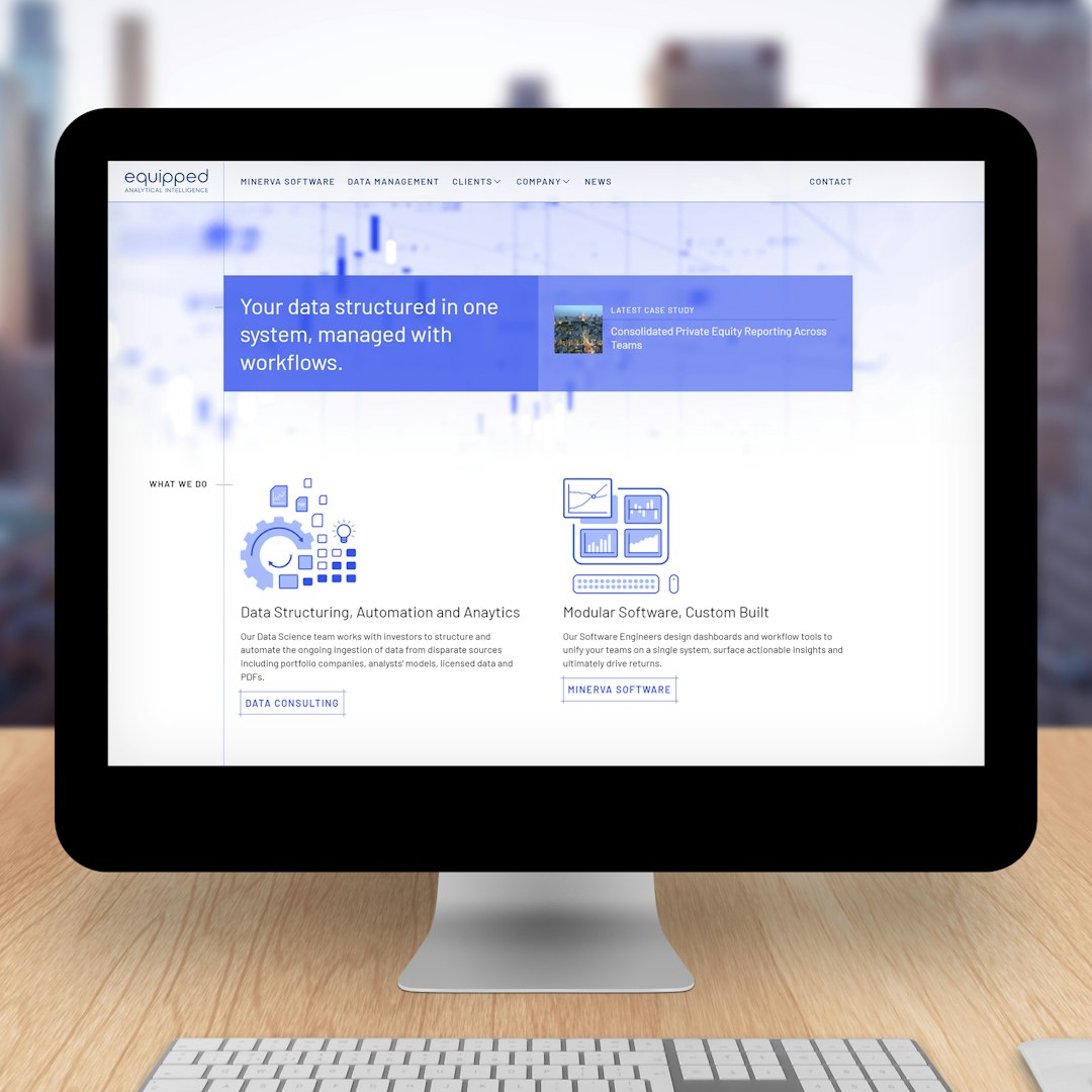 We designed and built a brand new website for Equipped, being the first embodiment of a refreshed brand that we developed. The design emphasises the sophistication of their technology that helps alternative investors manage their portfolios. The design incorporates a subtle motion and animation.