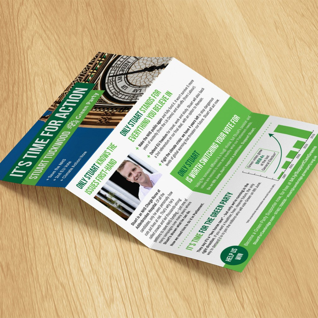 The most important leaflet in the General Election 2017 campaign for the Green Party in Cambridge was the one that would be sent to every single member of the electorate – a print run of 57,200 leaflets. Of course, this was printed on 100% recycled paper.