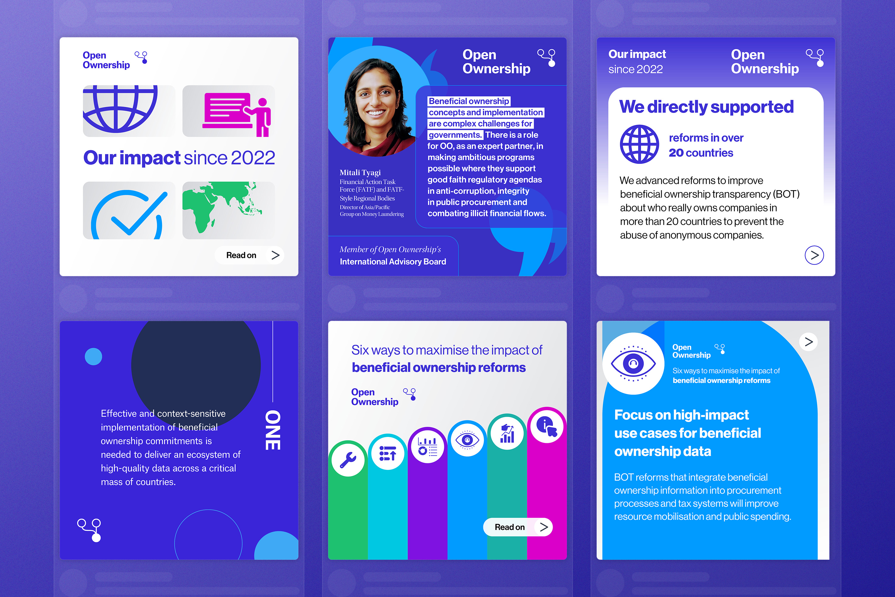 Utilising the brand’s primary colours and motifs, we find new ways of presenting information with every post, to keep posts feeling fresh and engaging, while maintaining a consistent authoritative tone.