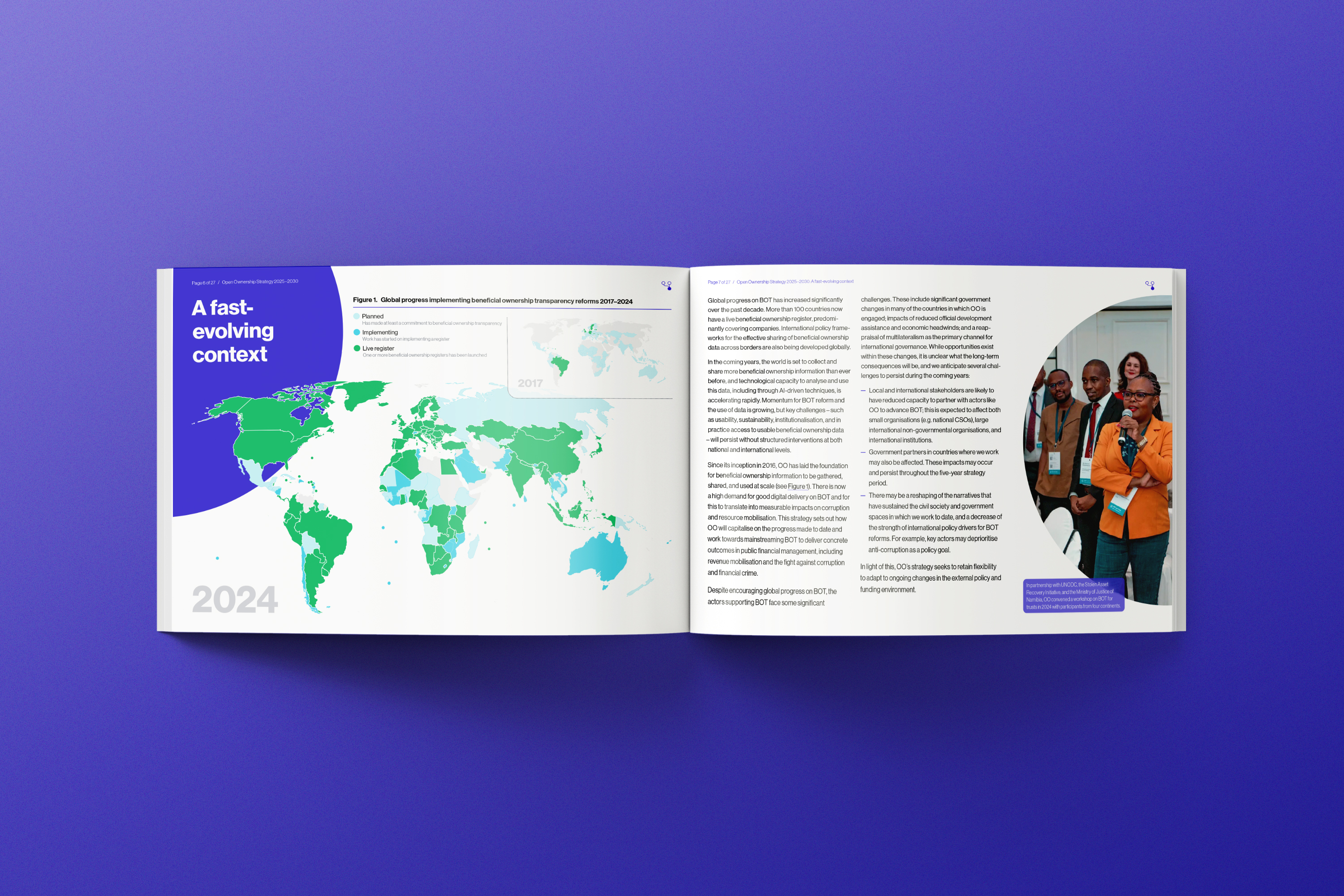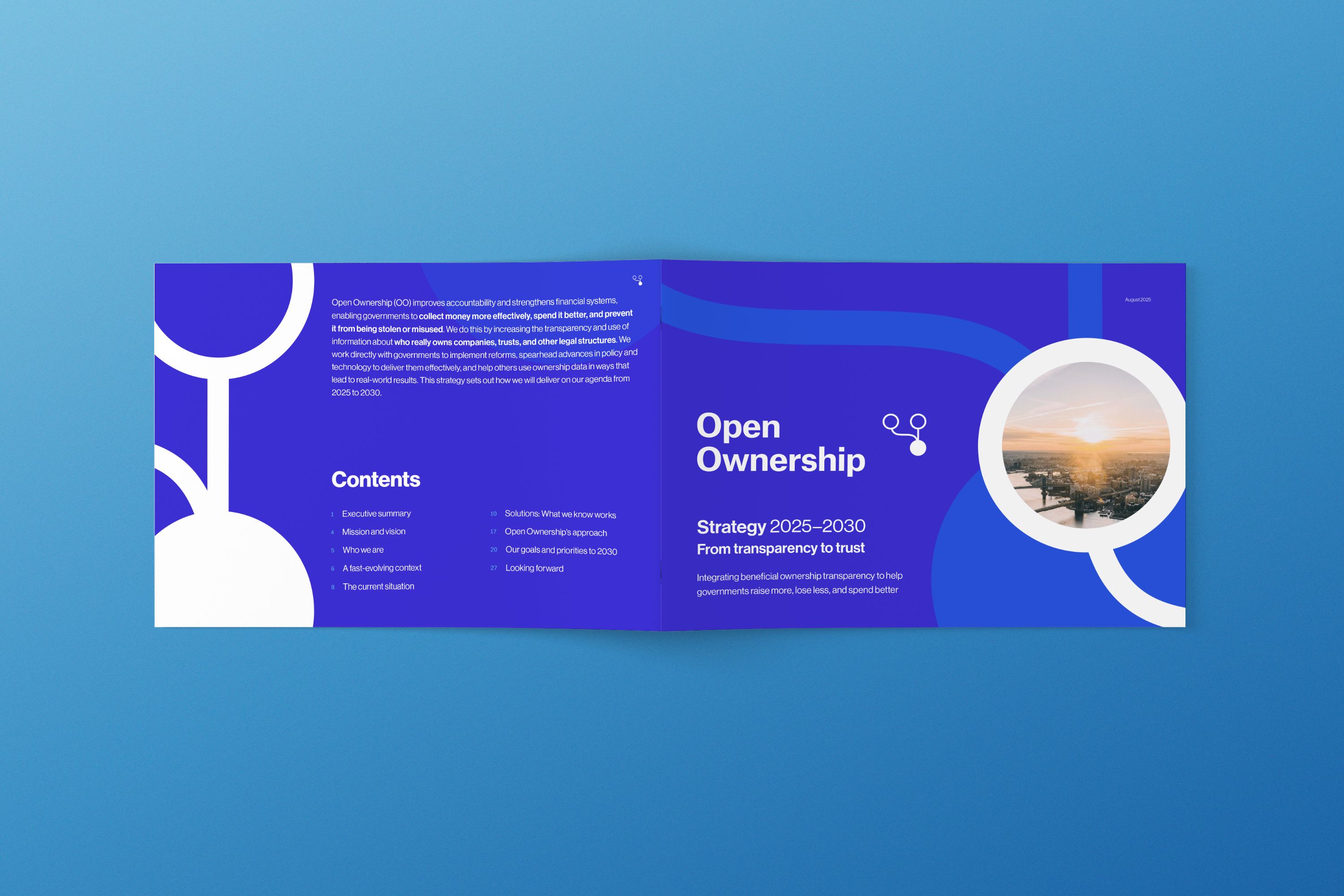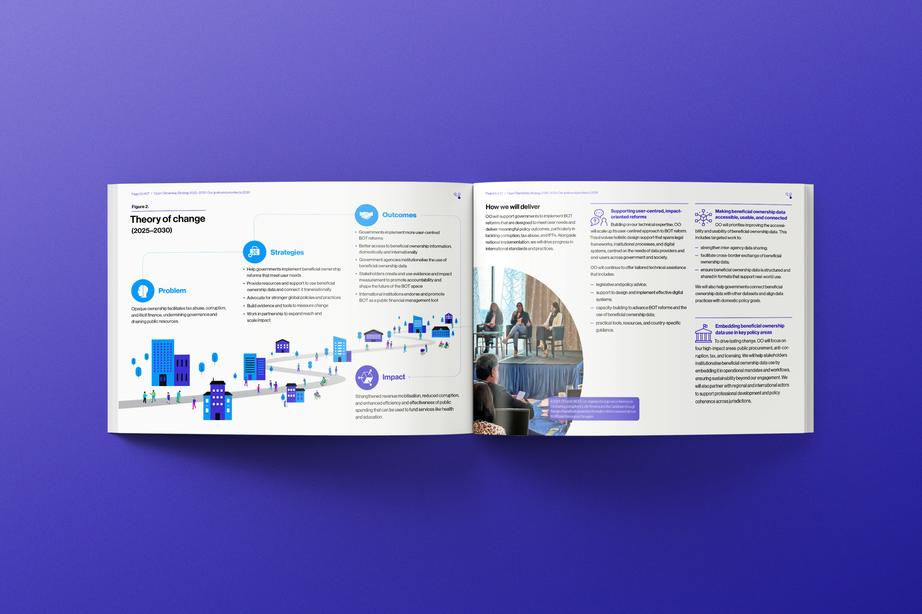 Open Ownership set out a bold 5-year vision and it deserved to be presented just as boldly. With every page, we considered how to get the point across clearly, visualise data points, and make the ideas come to life. Many of the infographics were also desiged for repurposing as social media posts, allowing Open Ownership to spread the word across multiple channels.
