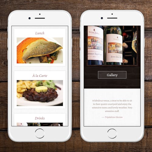 Features include menus, a photo gallery and a booking form. The site is easily editable directly by the client through a separate, customised editing system.