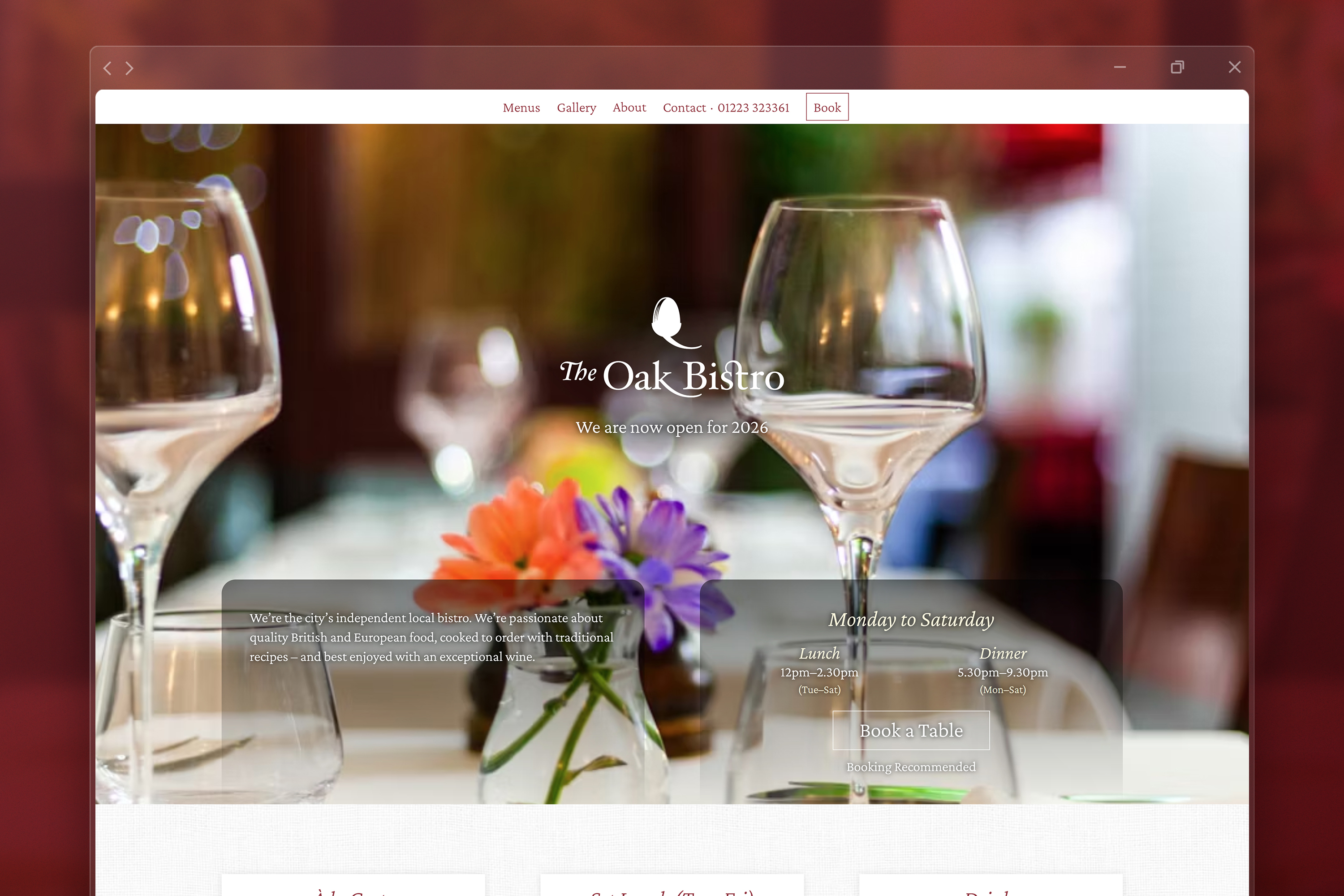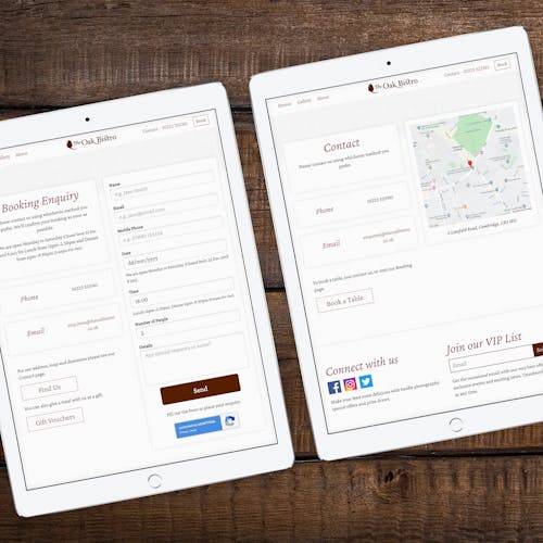 We designed and built a brand new website for The Oak Bistro, which we now host and maintain. The total redesign replaced an earlier site that hadn’t been updated in several years (see image above).