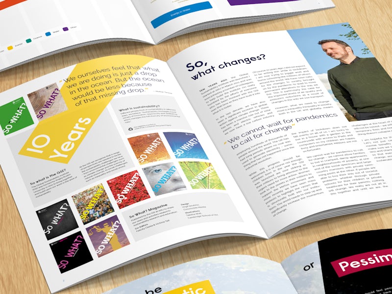 For its 10th year issue, we redesigned the annual magazine of the Global Sustainability Institute (GSI) at Anglia Ruskin University.