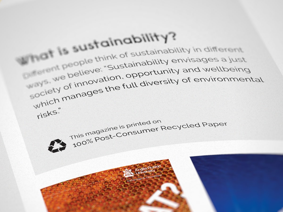 In addition to digital publication, a print run of 1,000 was produced for campus distribution. We worked with our ISO14001-certified printing suppliers to source an environmentally and socially responsible 100% Post-Consumer Recycled stock. We then printed lithographically (using vegetable inks). The result looked and felt great, while minimising the magazine’s carbon footprint.