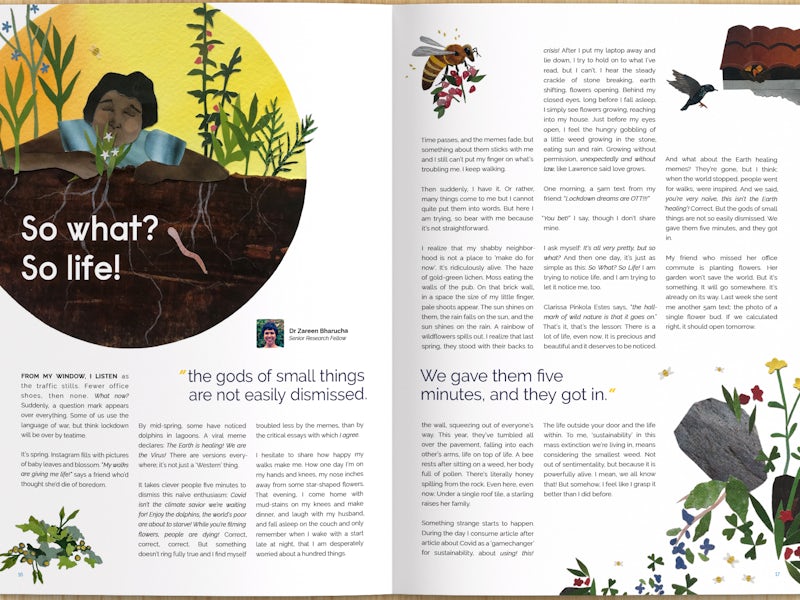 The magazine, “So What?”, gives students, educators and the public access to cutting-edge sustainability research, presented in a highly accessible and engaging format. The issue could be read on campus in 2020 and is available online.