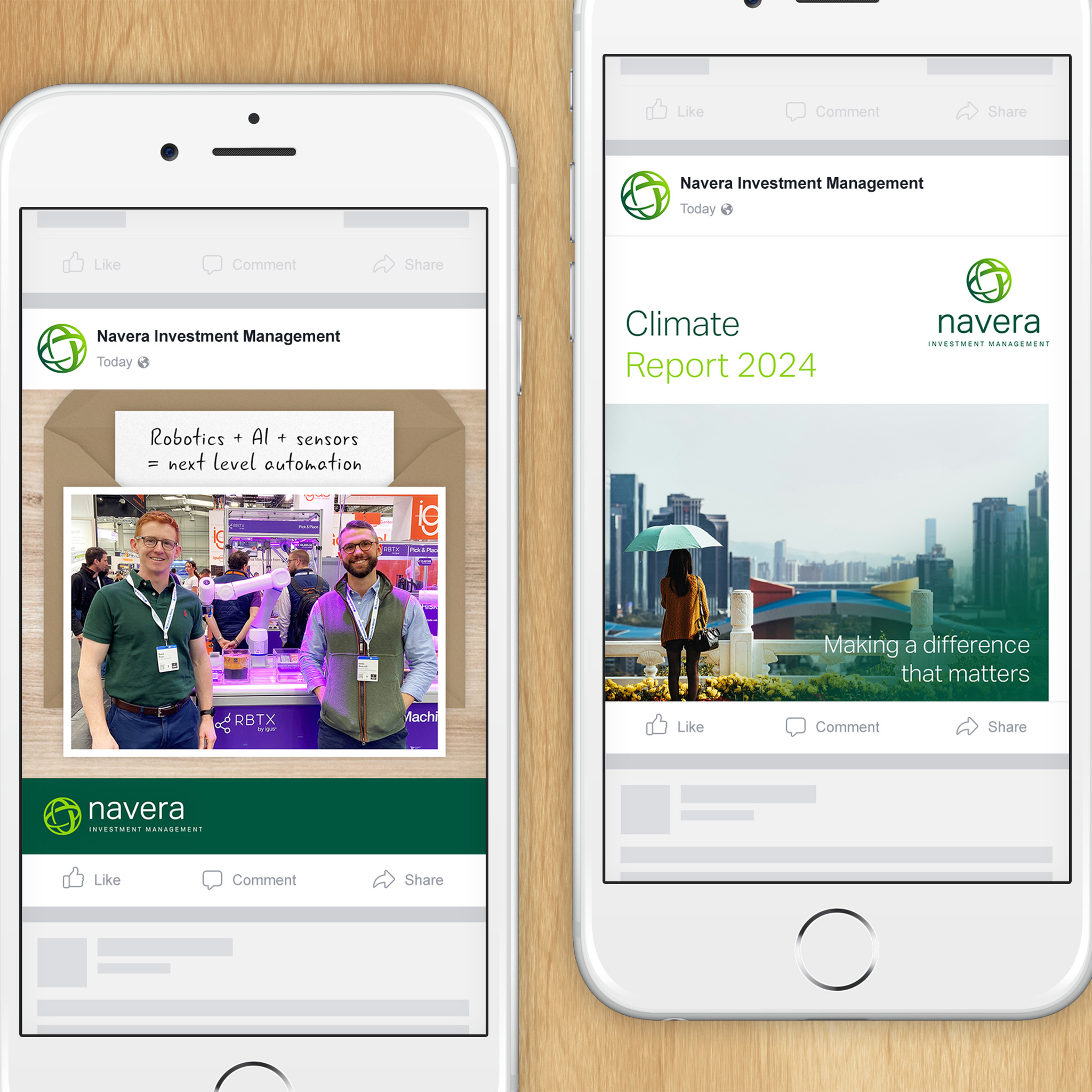 Navera maintain a LinkedIn account for which we prepare graphics to accompany their posts. This isn’t an emojis kind of brand: we ensure the graphics reflect their professional and people-focused tone.